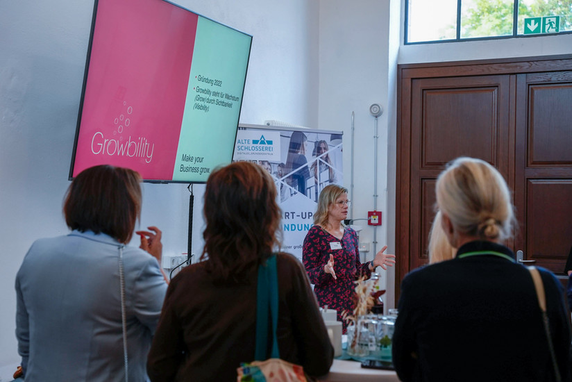 Den Auftakt machte unsere Speakerin Ruth Pfahler, SEO-Expertin und Gründerin von Growbility. In ihrem Impulsvortrag berichtete sie von ihrem Weg in die Selbständigkeit, den Chancen und Herausforderungen, die sie dabei meistern musste, und gab wertvolle Einblicke in die Entwicklung ihres Unternehmens.